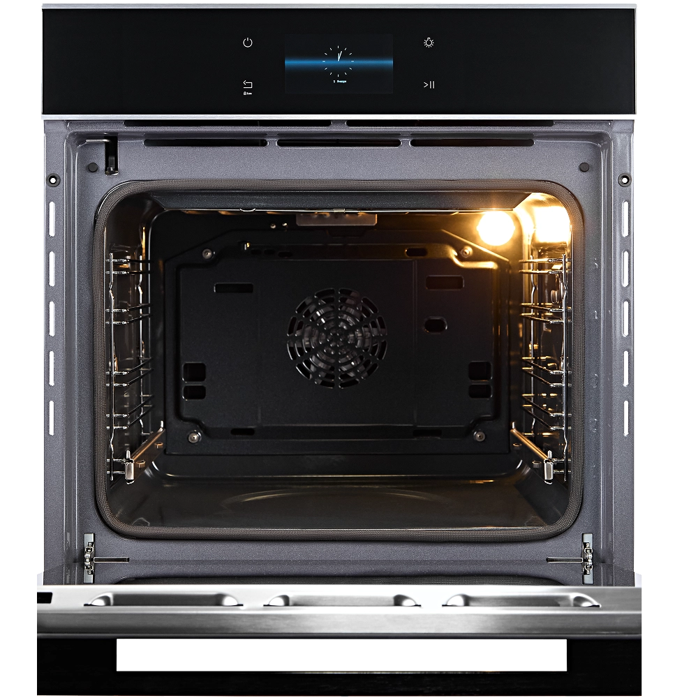Премиальный внешний вид духового шкафа станет стильным акцентом любого интерьера. Лаконичное исполнение и высококачественные материалы позволяют модели органично вписаться как в современный, так и в классический кухонный ансамбль. Информативный цветной дисплей с яркой и чёткой графикой делает управление максимально наглядным: вы всегда будете видеть выбранные режимы и текущие параметры приготовления.