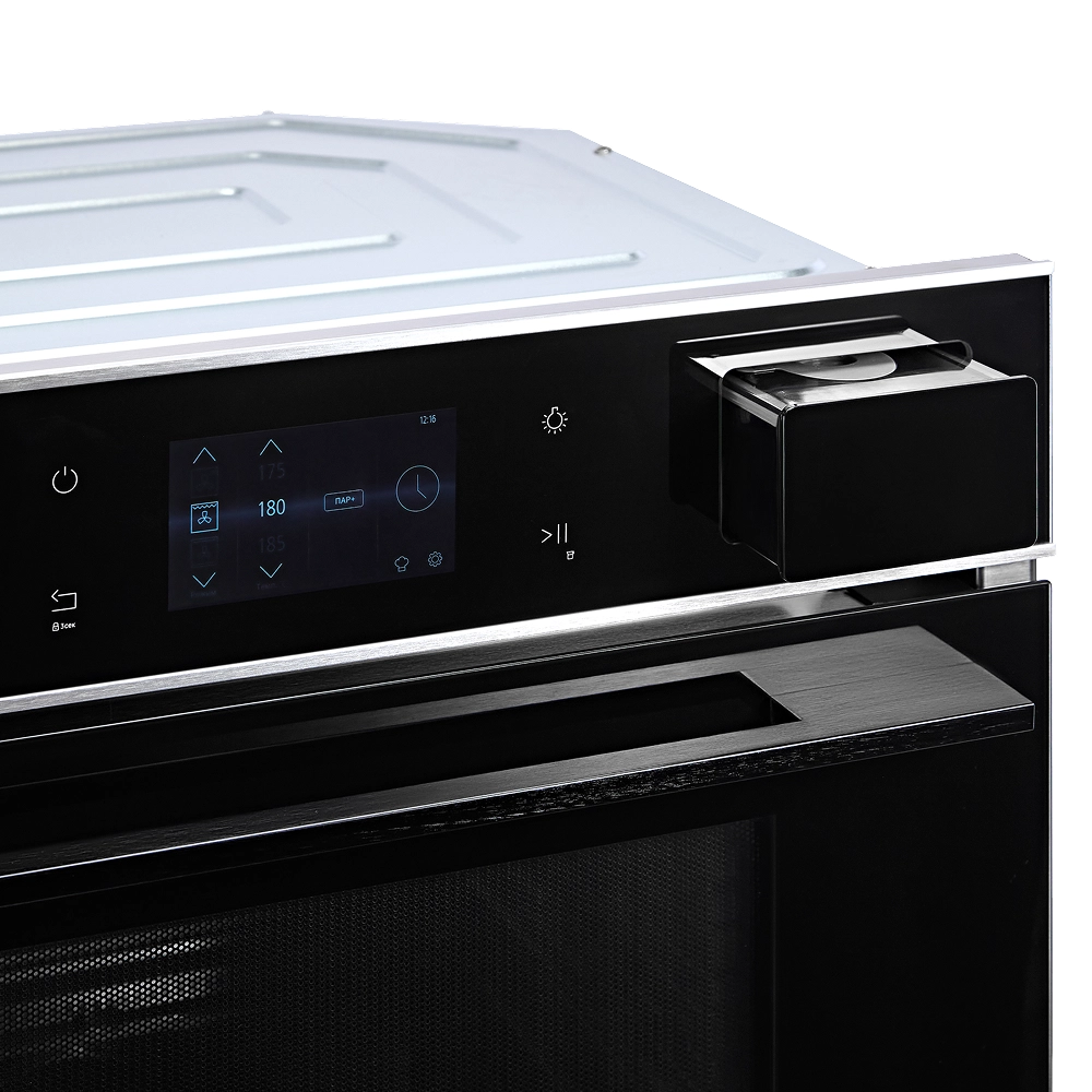 Управление прибором реализовано через интуитивно понятный цифровой интерфейс, позволяющий точно настраивать температуру и время приготовления, выбирать оптимальные режимы для разных типов блюд и легко контролировать процесс готовки благодаря информативному дисплею.