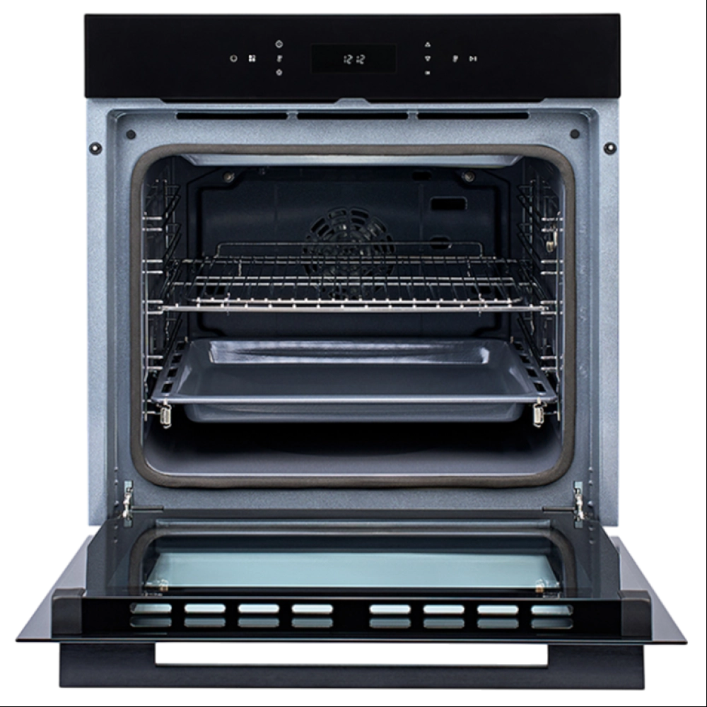 Строгий фасад из чёрного стекла с минималистичными сенсорными элементами управления подчеркнёт индивидуальность вашей кухни, создавая гармоничный и эффектный интерьер. Яркий цифровой дисплей позволяет с лёгкостью выбирать нужный режим и контролировать процесс приготовления.