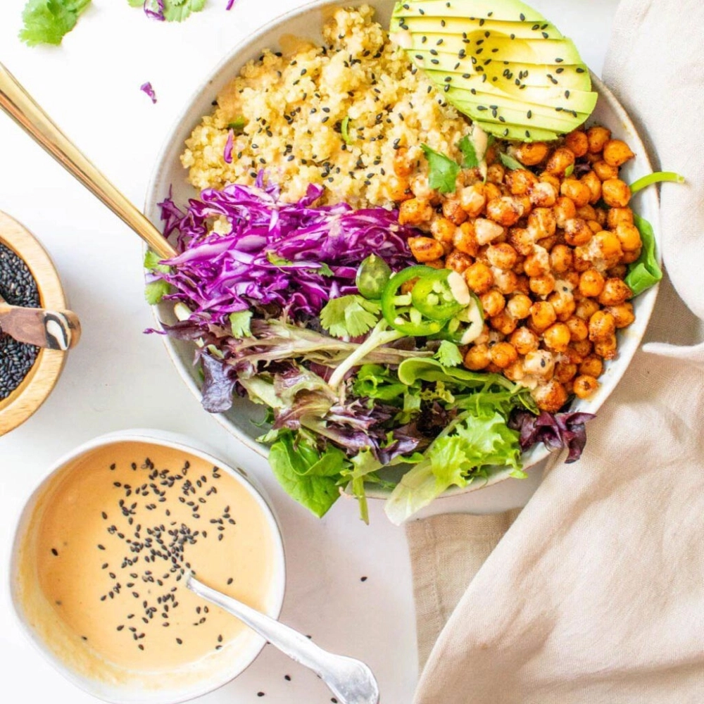 Боул с киноа, овощами и кунжутной заправкой — энергия и польза.