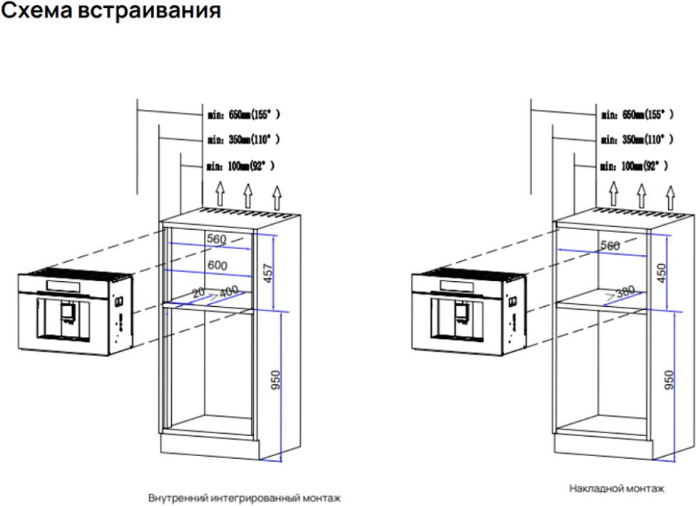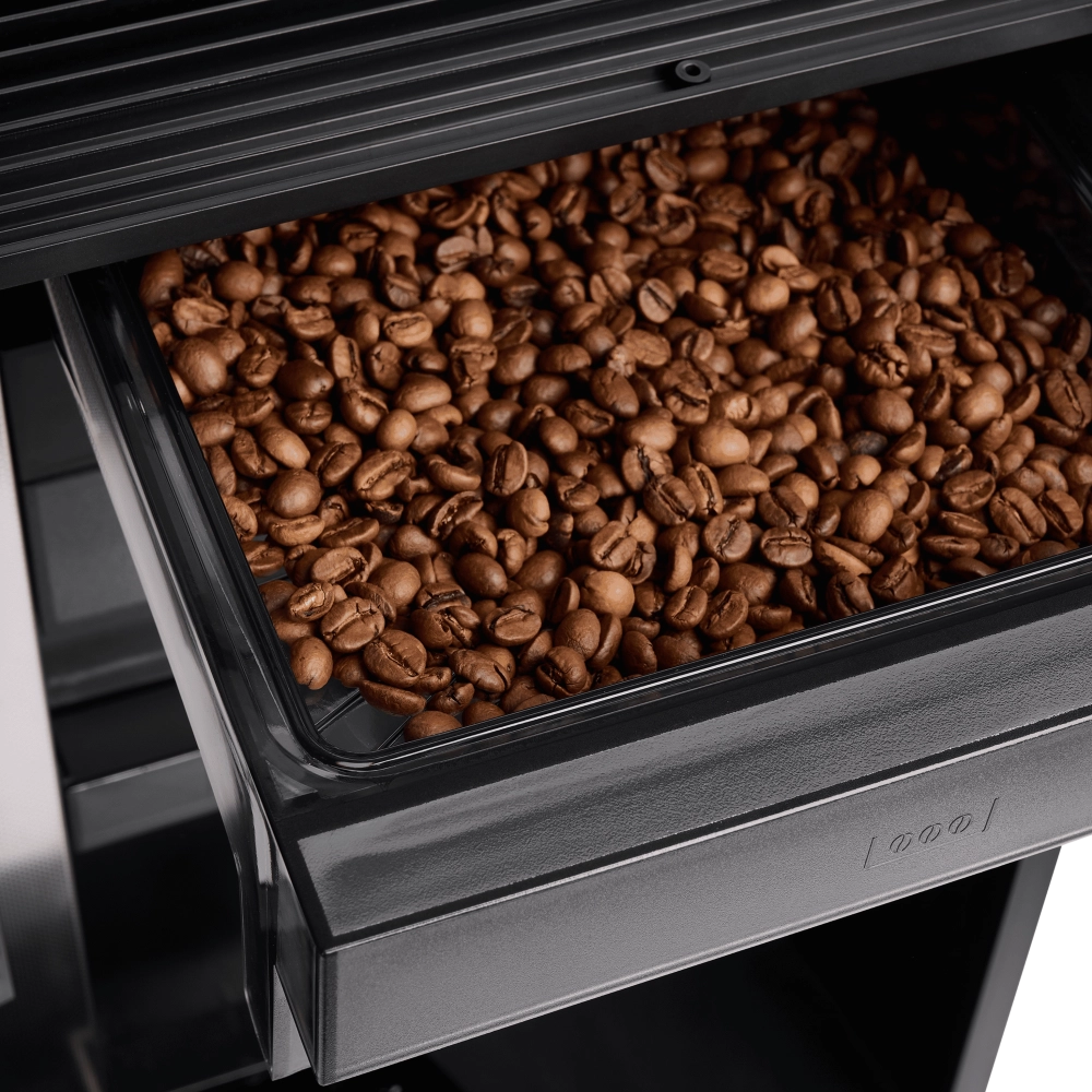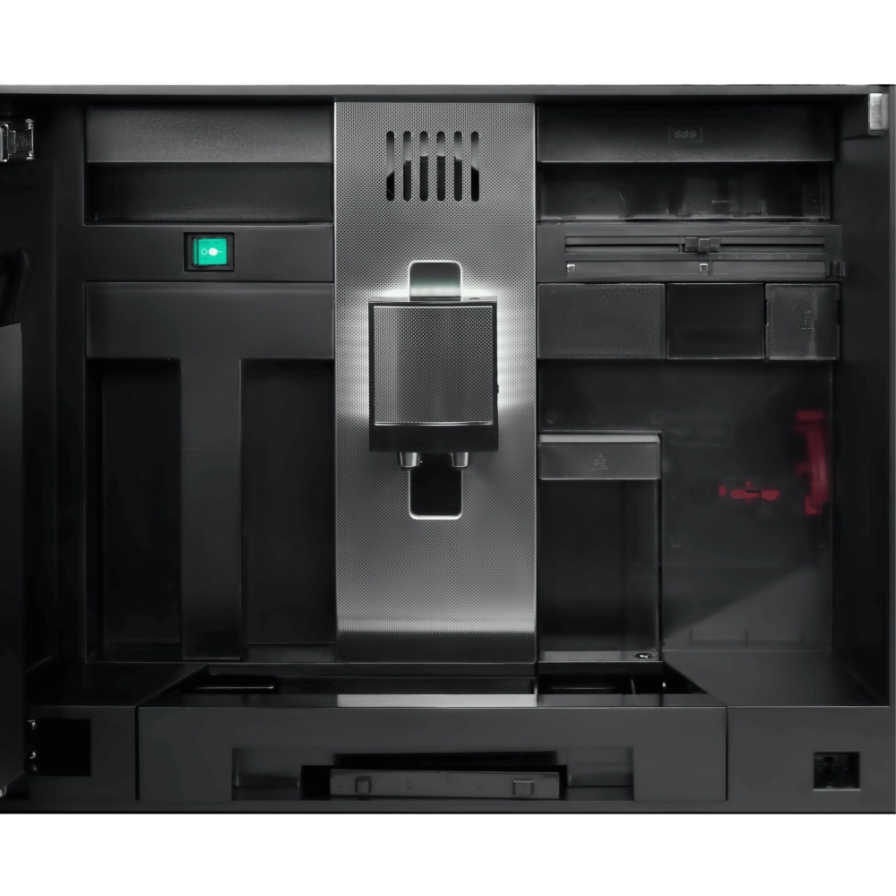 Модель полностью встраивается в кухонный гарнитур — она идеально подходит для стандартных модулей шириной 60 см. При мощности 1600 Вт кофемашина обеспечивает быстрый нагрев и стабильную работу, а помпа с давлением 19 бар гарантирует профессиональное экстрагирование кофе. Вместительный резервуар для воды на 2,4 л позволяет приготовить до 20 чашек без долива, а контейнер для зёрен на 500 г обеспечит запас на несколько дней.